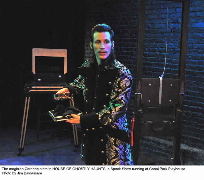 Cardone's magic and spookshow at the Canal Park Playhouse, playing every Tuesday until April 17th, is an intimate, weird, and funny romp for just about everyone (except very young kids), especially the last 10 minutes, when the lights die and the ghosts come alive.